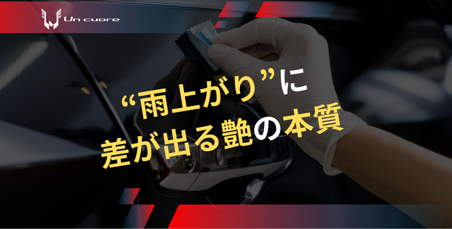 カーコーティングの仕上がりは、晴れた日の艶で評価されることが多いものです。しかし実際には、雨が上がった直後にこそ本質が表れます。 ボディに残る水滴の形。流れ方や残り方。その一つひとつが、施工の完成度を静かに映し出します。… 続きを読む 横浜市都筑区 カーコーティング アンクオーレ “雨上がり”に差が出る艶の本質